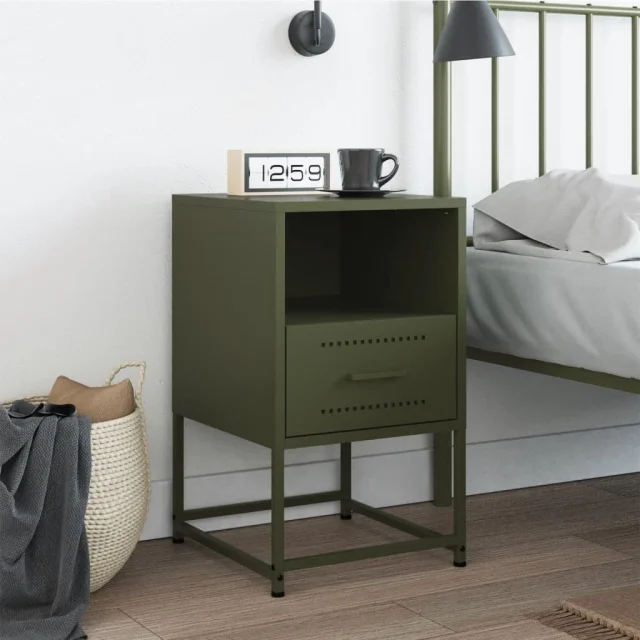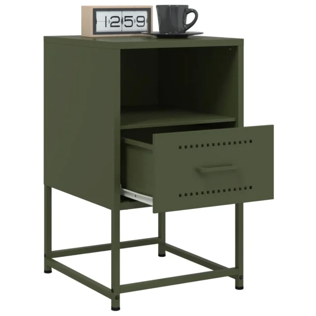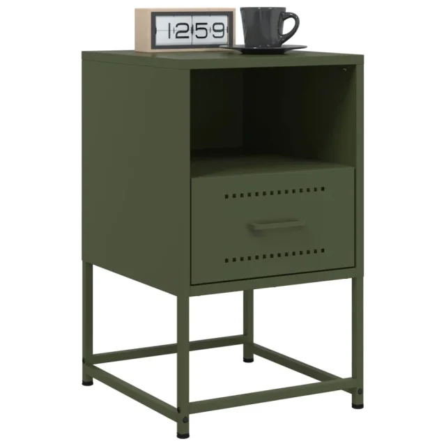 Nočna omarica - Nočna miza olivno zelena 36x39x60,5 cm jeklo