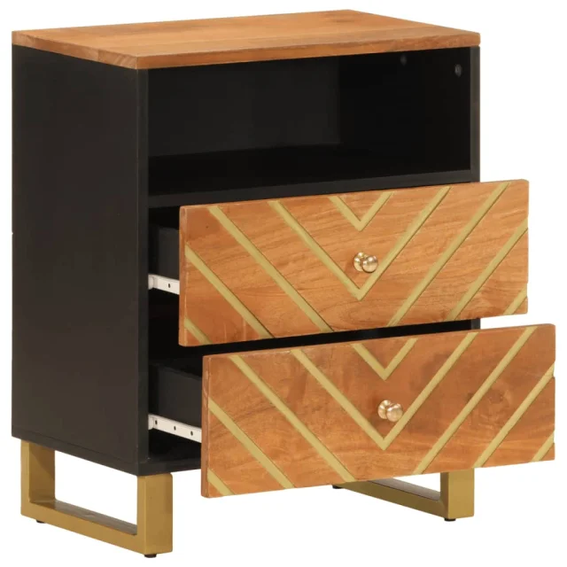 Nočna omarica - Nočna miza rjava in črna 50x33x60 cm trden mangov les