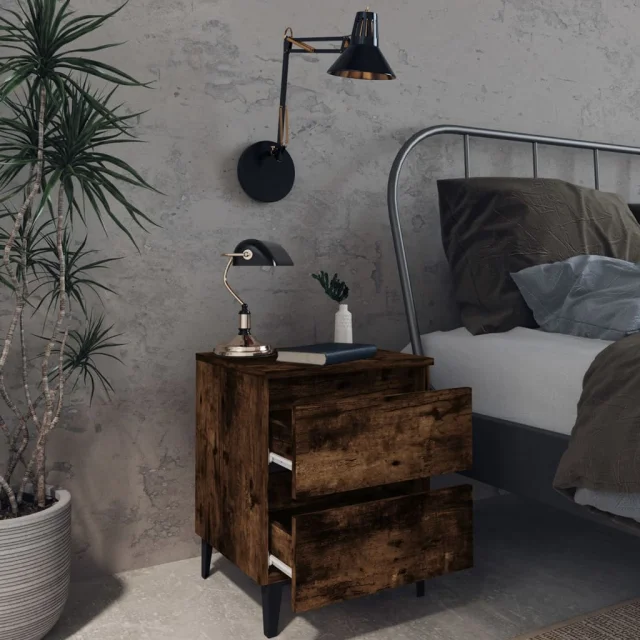 To posteljno stojalo s štirimi kovinskimi nogami je stabilno in trdno. Poleg tega je nočna omarica opremljena z dvema predaloma, ki nudita dovolj prostora za urejeno in organizirano shranjevanje stvari. Preprosto čiščenje z vlažno krpo.