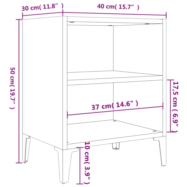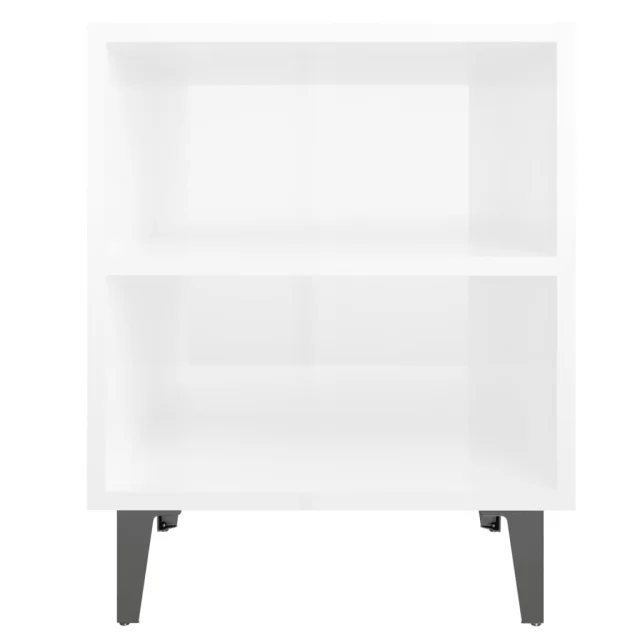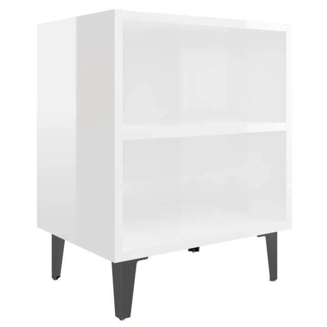Nočna omarica - Nočna miza s kovinskimi nogami visok sijaj bela 40x30x50 cm