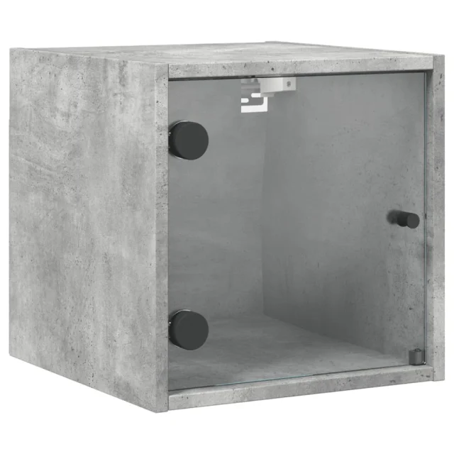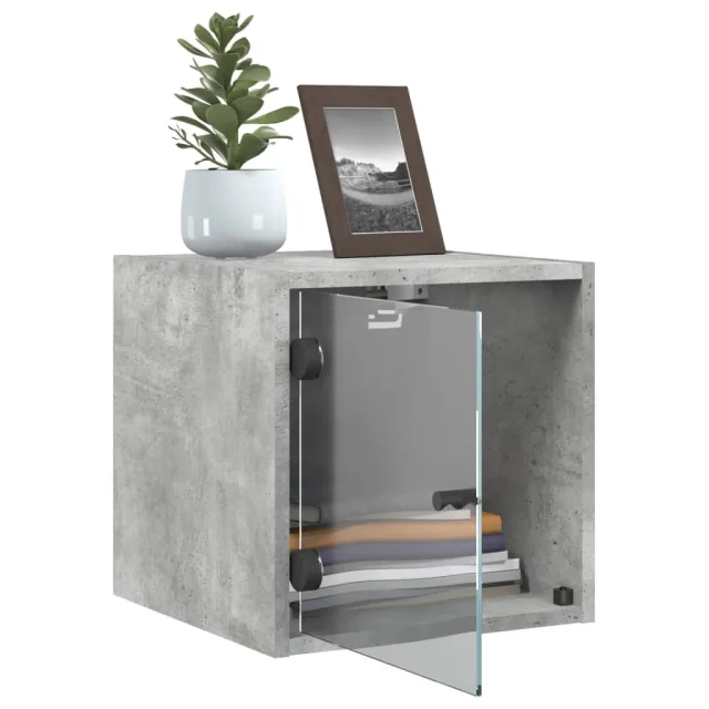 Nočna omarica - Nočna miza s steklenimi vrati betonsko siva 35x37x35 cm