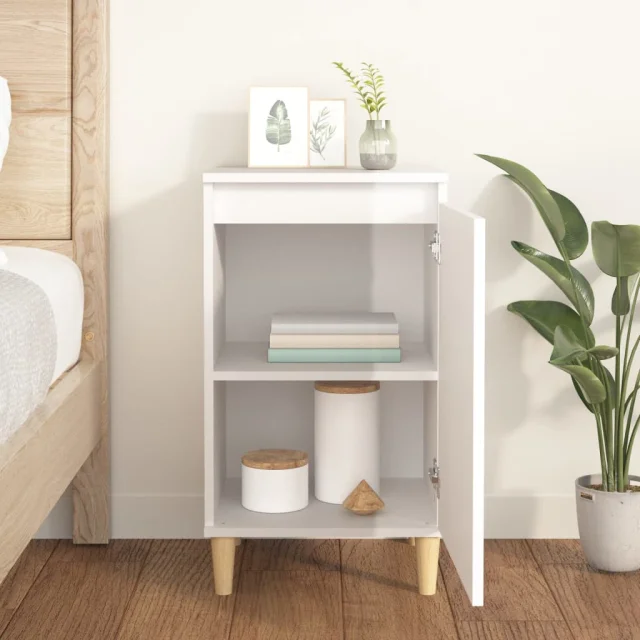 Nočna omarica - Nočna miza visok sijaj bela 40x35x70 cm inženirski les
