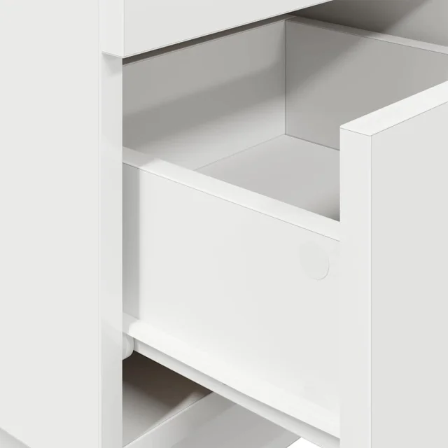 • Praktična uporaba: Miza je zasnovana za funkcionalnost in udobje, saj ima idealno višino za enostaven dostop s postelje. Predali so opremljeni s praktičnimi ročaji, zato se odpirajo gladko in brez napora.
