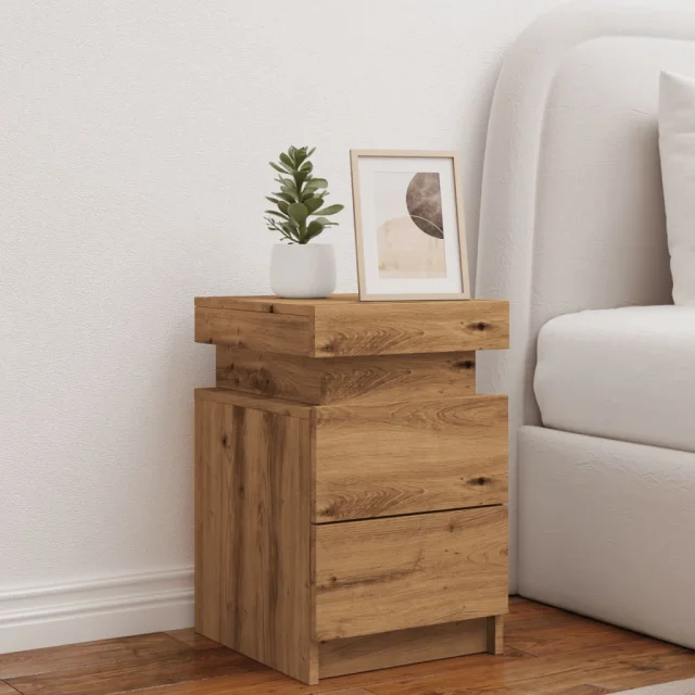 Nočna omarica - Nočna miza z LED artisan hrast 35x39x55 cm inženirski les