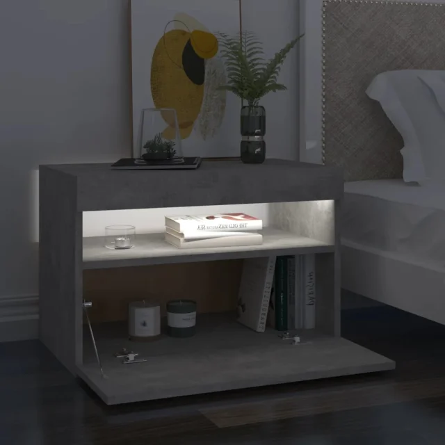 Nočna omarica - Nočna miza z LED lučkami betonsko siva 60x35x40 cm