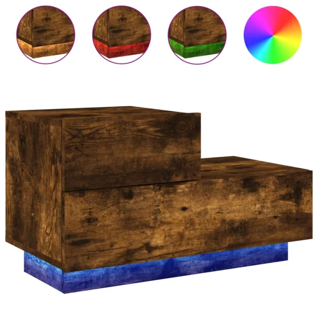 Nočna omarica - Nočna miza z LED lučkami dimljeni hrast 70x36x40,5 cm