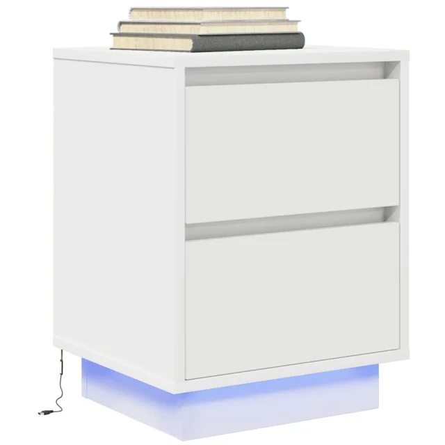 Nočna omarica - Nočna miza z LED svetili bela 38x34x50 cm
