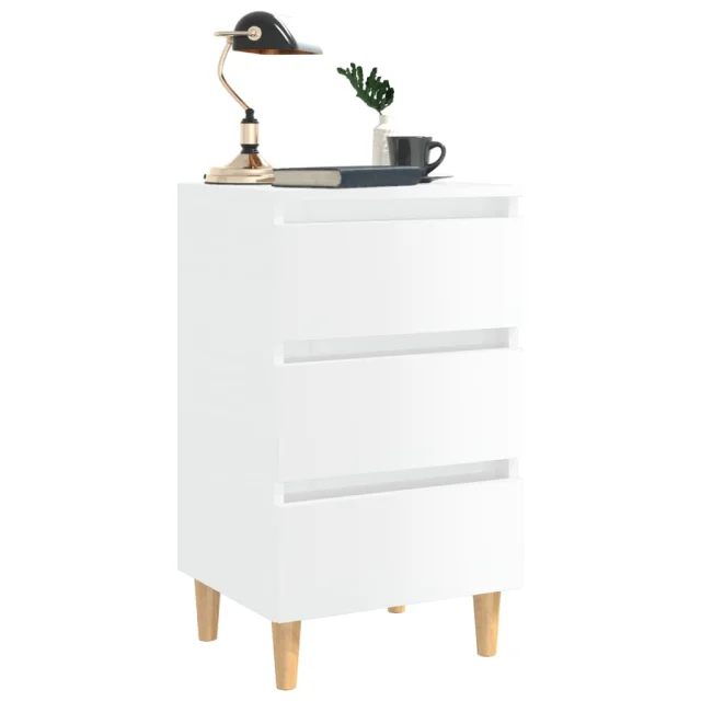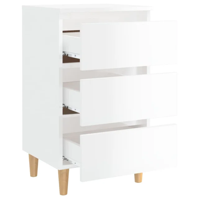 Nočna omarica - Nočna miza z lesenimi nogami visok sijaj bela 40x35x69 cm
