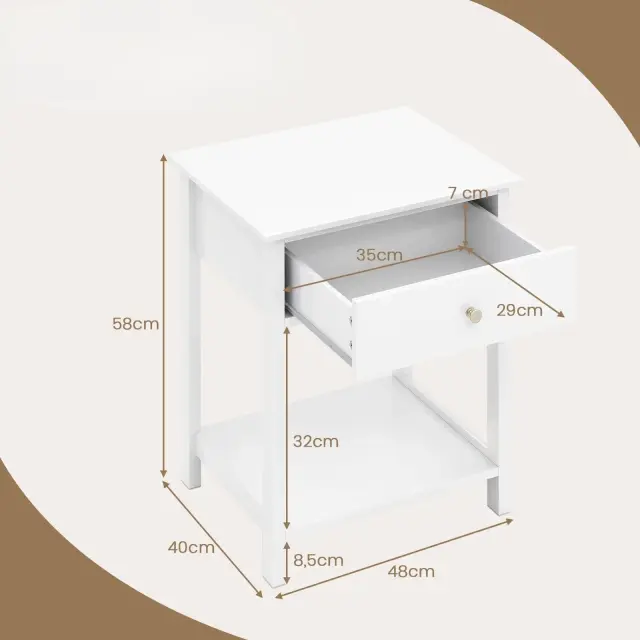 Nočna omarica Nočna omarica s predalom in odprto polico bela