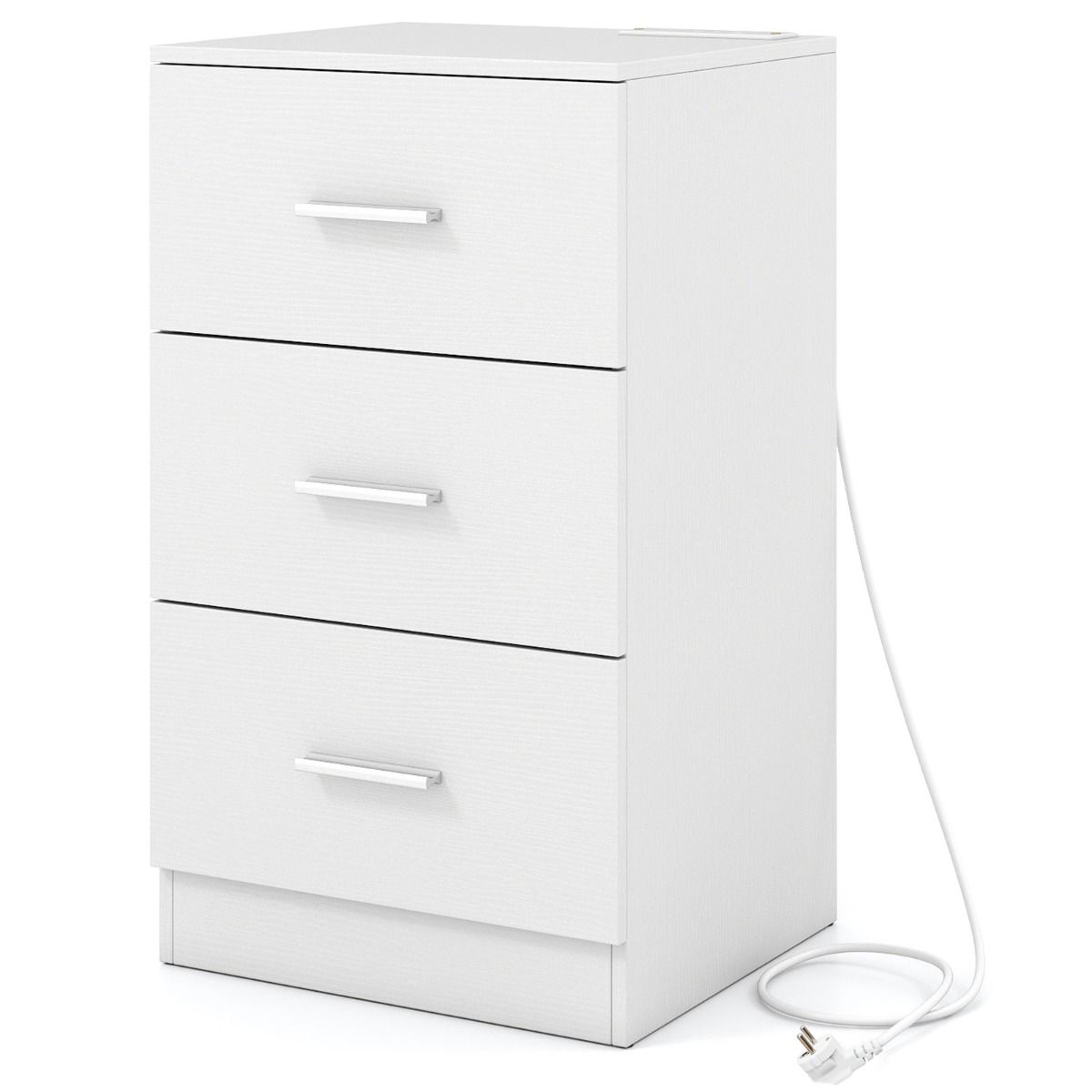Vsestranska uporaba: Ta vsestranski kos pohištva lahko uporabite kot prostorsko varčno visoko nočno omarico v spalnici, kot stransko mizico v dnevni sobi ali kot omarico za shranjevanje v kabinetu ali študentski sobi. Čista, minimalistična zasnova se prilega vsakemu slogu notranjosti in ponuja praktične rešitve za shranjevanje in polnjenje točno tam, kjer jih potrebujete.