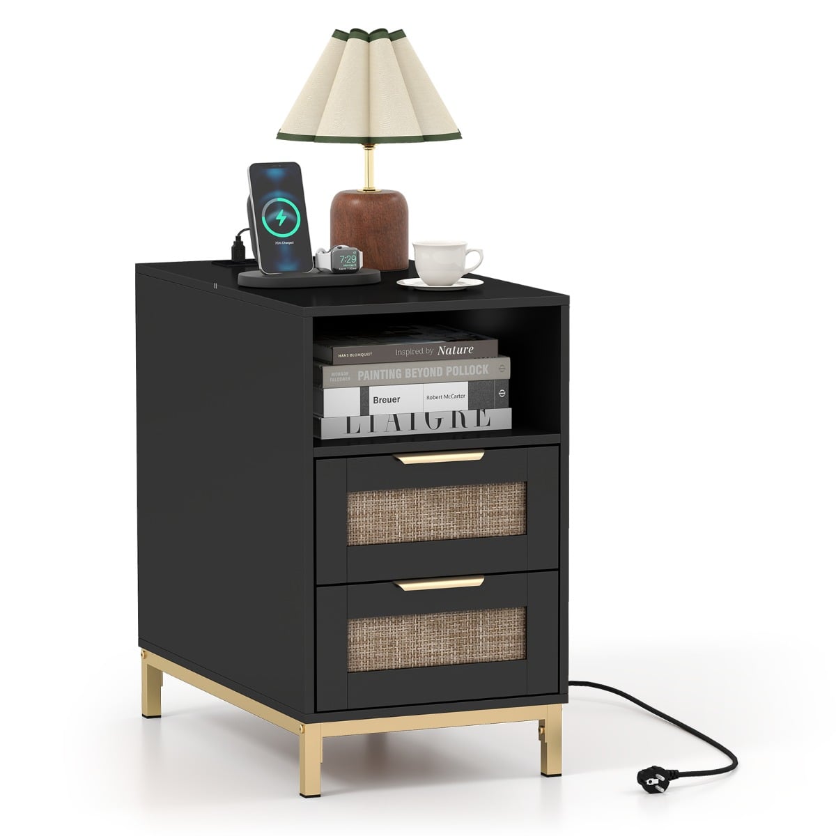 Uredite svoj dom z nočno mizico iz ratana s polnilno postajo!