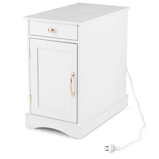 Nočna omarica s predalom in polnilno postajo Bela stranska mizica