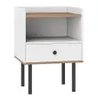 Uporabniku prijazna zasnova: dvignjeni robovi plošče nočne omarice preprečujejo zdrs predmetov z nje. Predal je opremljen s kovinskimi vodili in praktičnim ročajem, zato se brez težav odpira in zapira.