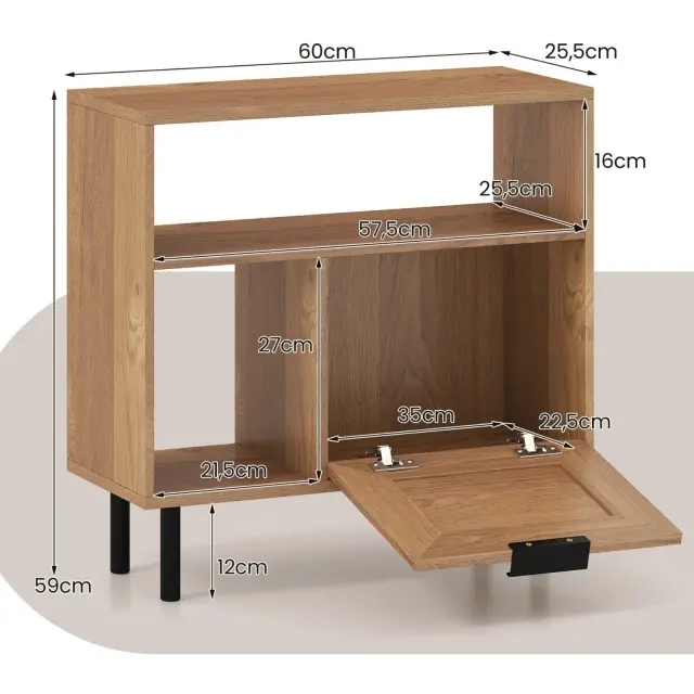 Velikost majhnega odprtega predala: 21,5 x 25,5 x 27 cm (D x Š x V)
