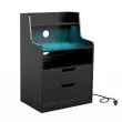 Nočna omarica z osvetlitvijo LED in polnilno postajo Črna nočna omarica