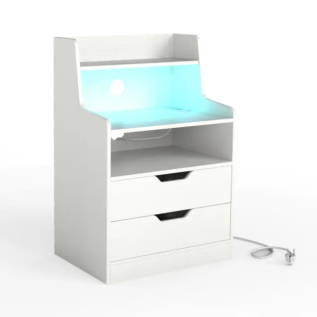 Preoblikujte svoj prostor s pridihom čarobnosti! Osvetlite svoj svet z našo inovativno zasnovano nočno omarico LED, ki ponuja 16 spektakularnih barv in impresivne svetlobne učinke - prilagojene vsakemu razpoloženju, ki jih lahko priročno upravljate z daljinskim upravljalnikom! Z vgrajenimi priključki AC, USB in Type-C lahko udobno polnite svoje naprave. Ta eleganten organizator ima 5 prostornih ravni in elegantne predale, v katere lahko lepo shranite vse svoje potrebščine. Nočna omarica je izdelana iz trpežnih materialov in opremljena z varnostnimi funkcijami, zato vašemu bivalnemu prostoru doda sodobno eleganco in neprekosljivo udobje.