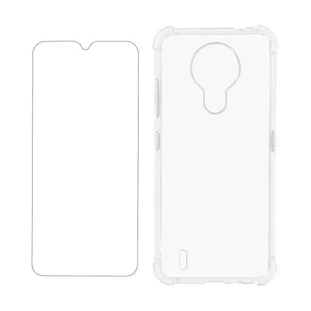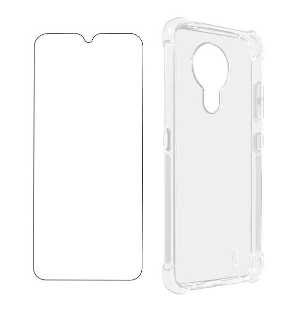 Nokia 1.4 360° Protection Pack, prozoren silikonski ovitek, odporen na udarce, s kaljenim steklom