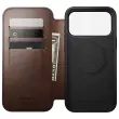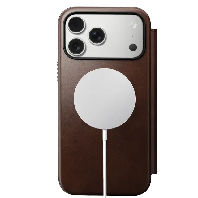 Horweenov temno rjavi usnjeni kovček za iPhone 17 Pro Max omogoča združljivost s sistemom MagSafe za brezžično polnjenje in dodatno opremo. Pravo usnje z uporabo dobi naravno patino. Kovček ima tri reže za različne kartice in poseben predal za bankovce.. Obdelani kovinski gumbi povečujejo natančnost stranskih upravljalnih elementov, na priklopnih točkah pa je mogoče namestiti trak za roko..