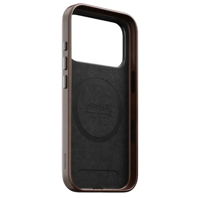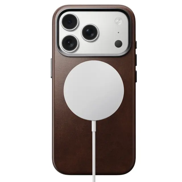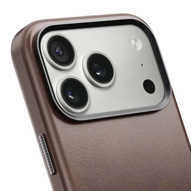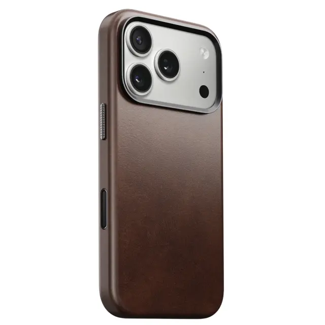 Ta tradicionalni temno rjavi etui MagSafe za iPhone 17 Pro je izdelan iz usnja Horween, ki sčasoma dobi patino in je edinstvenega videza.. Okvir iz polikarbonata in odbijač iz TPE blažita udarce in ščitita vaš iPhone pred padci z višine do 3 metrov. Dvignjeni robovi ščitijo zaslon in kamero pred praskami, obloga iz mikrovlaken pa zmanjšuje notranje trenje.. Gumbi iz aluminija so odporni na obrabo in ohranjajo gladek otip.