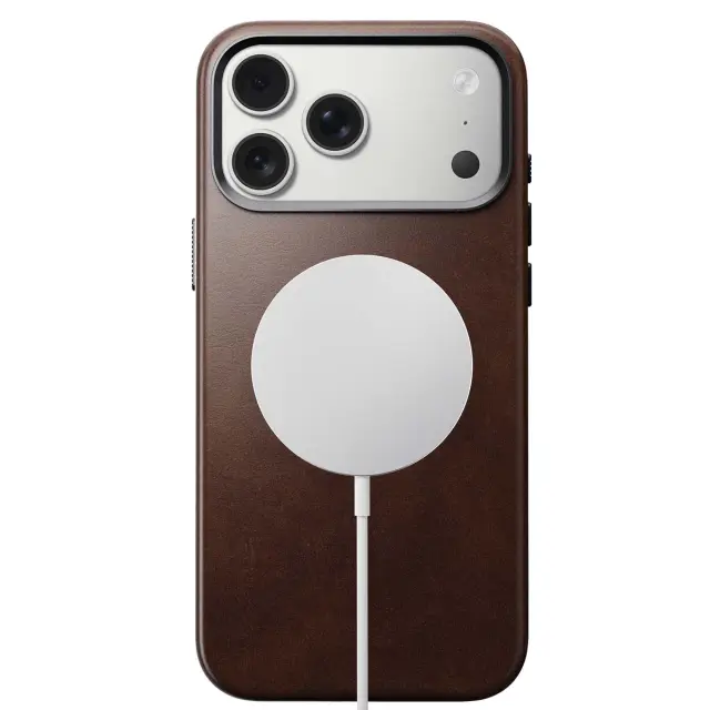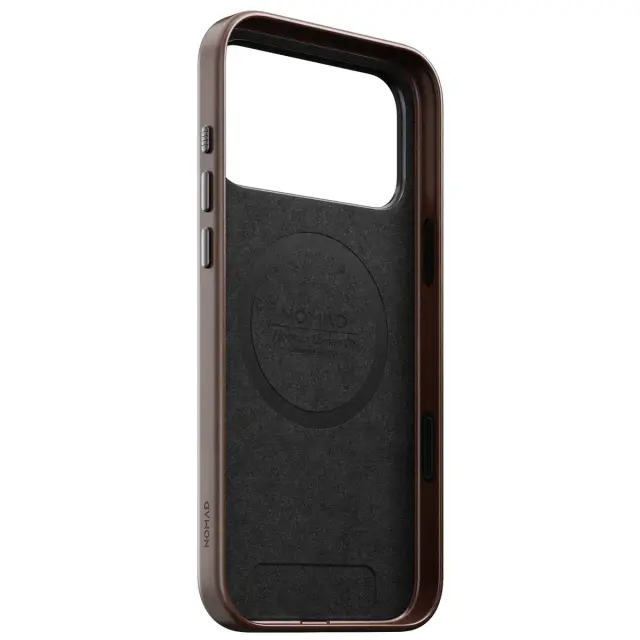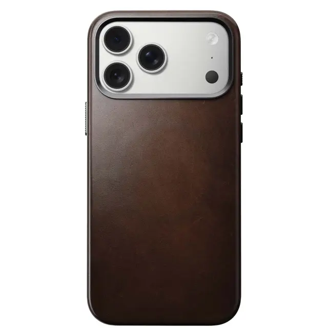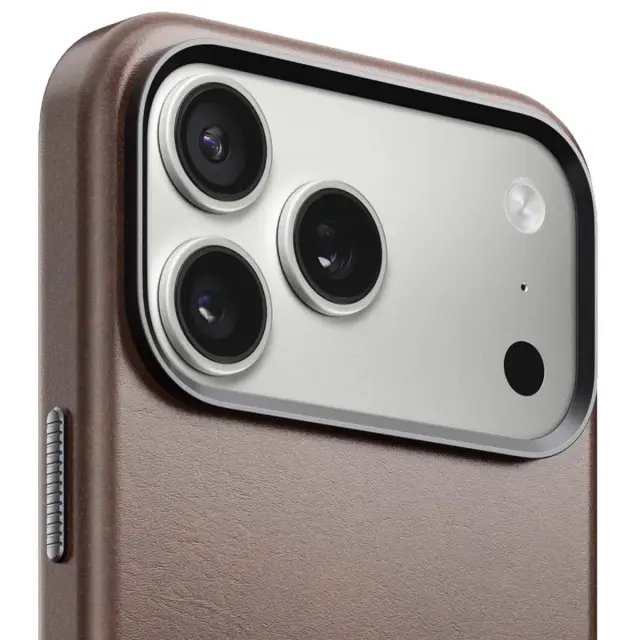 Ta tradicionalni temno rjavi etui MagSafe za iPhone 17 Pro Max je izdelan iz usnja Horween, ki sčasoma dobi patino in je edinstvenega videza.. Okvir iz polikarbonata in odbijač iz TPE blažita udarce in ščitita vaš iPhone pred padci z višine do 3 metrov. Dvignjeni robovi ščitijo zaslon in kamero pred praskami, obloga iz mikrovlaken pa zmanjšuje notranje trenje.. Gumbi iz aluminija so odporni na obrabo in ohranjajo gladek otip.