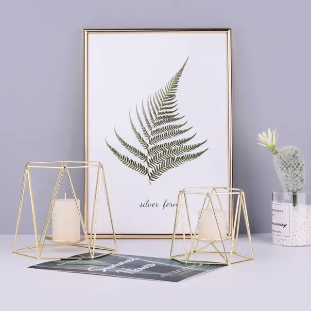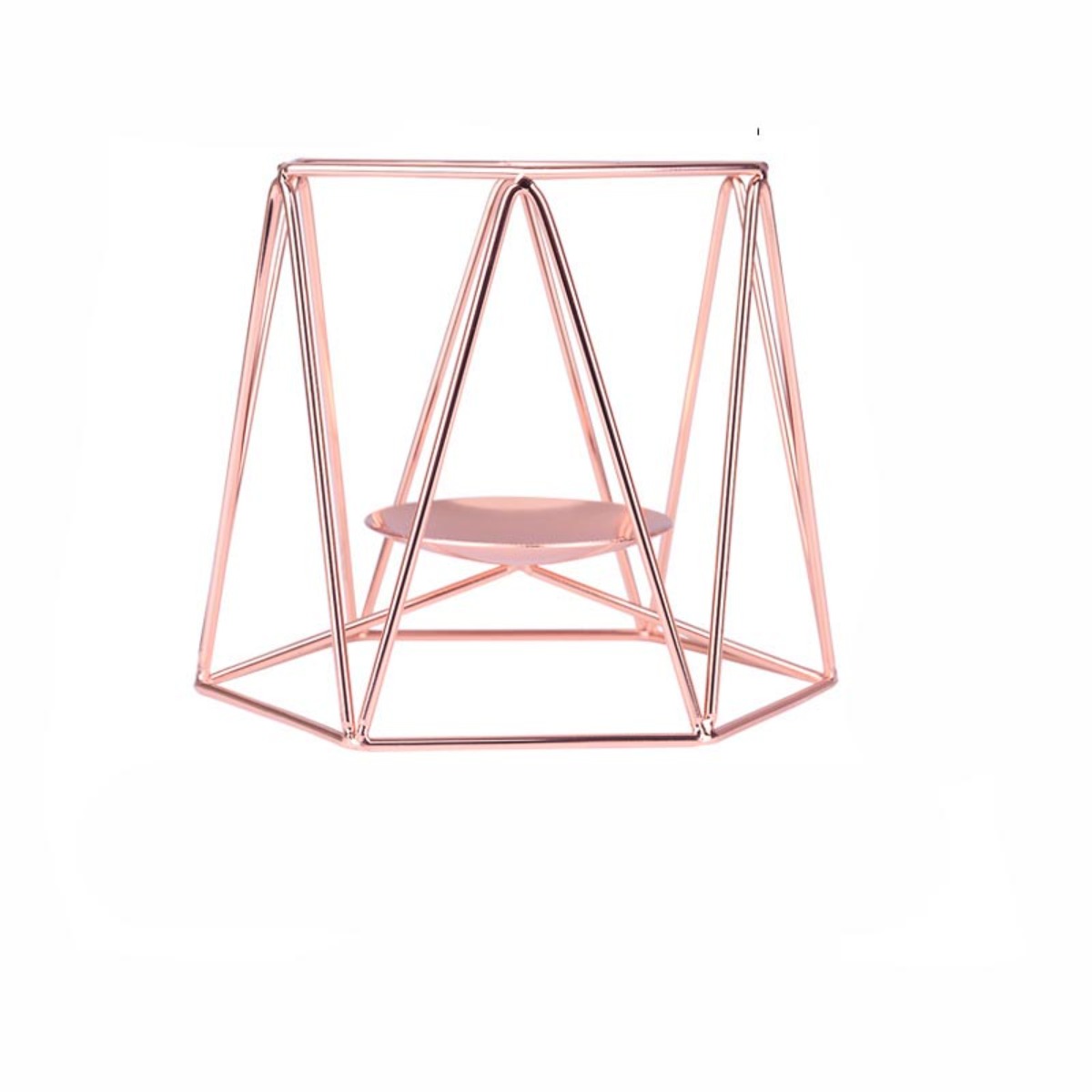 Nordic Iron Art Svečnik - Zlata Majhna Velikost, Minimalistično Kovinsko Stojalo PinkGold