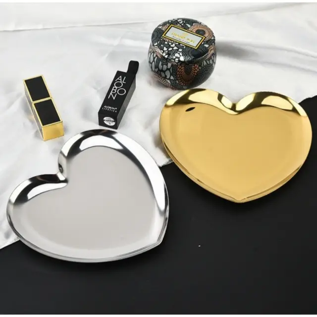 Vrhunski materiali: Izkusite razkošje natančno izbranega nerjavečega jekla, strokovno izdelanega s polirano elektroplatirano površino. Te srčaste posode za nakit niso samo vizualno privlačne, ampak so tudi odporne na madeže in korozijo, kar zagotavlja, da ohranijo svoj sijaj leta. Gladki, zaobljeni robovi zagotavljajo udobno in varno rokovanje, preprečujejo nenamerne praske ali nelagodje. Investirajte v te posode za kombinacijo estetske privlačnosti in trajne učinkovitosti. Uporabite jo kot posodo za prstane, držalo za ogrlice ali organizator kozmetike.