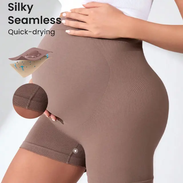 Podporni kroj čez trebuh: Naše nosečniške hlače za jogo imajo visok pas in kroj čez trebuh, ki zagotavlja nežno oporo in pomaga, da legice ostanejo na mestu. Raztegljiv pas se udobno prilega vašemu rastočemu trebuščku, ne da bi se počutile utesnjeno.
