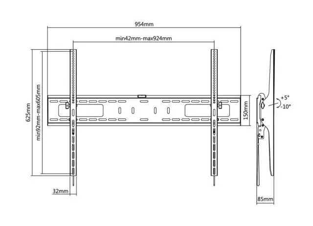- Razdalja od stene: 85 mm