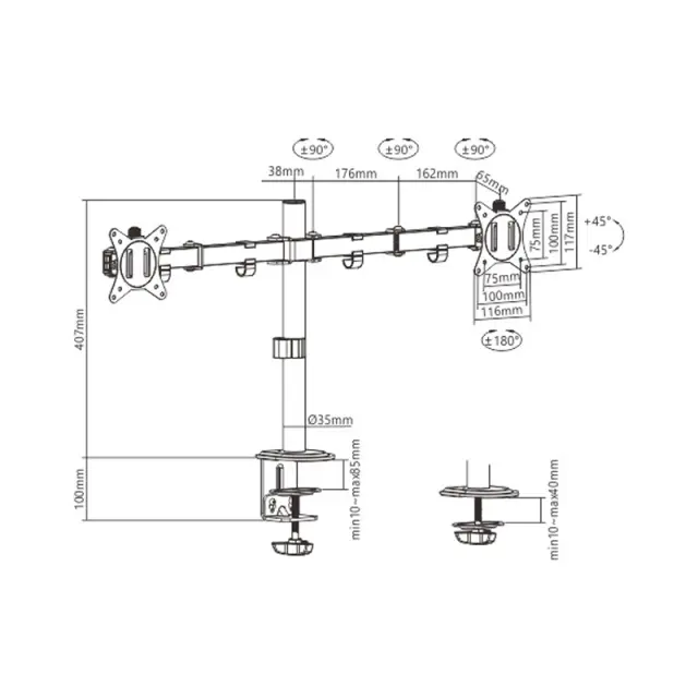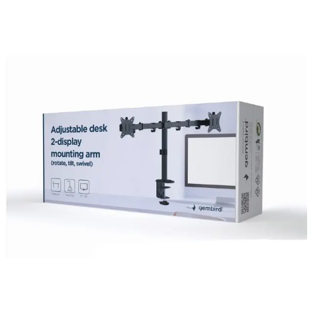 Jekleni namizni nosilec za dva LCD monitorja Gembird MA-D2-01, primeren za zaslone od 17″ do 32″.