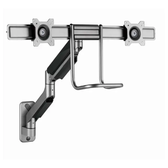 Jekleni stenski nosilec za dva LCD monitorja Gembird MA-WA2-01, primeren za zaslone od 17″ do 32″.