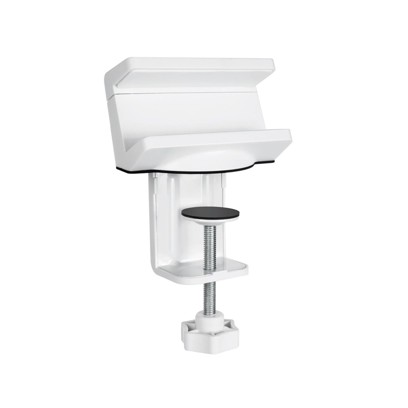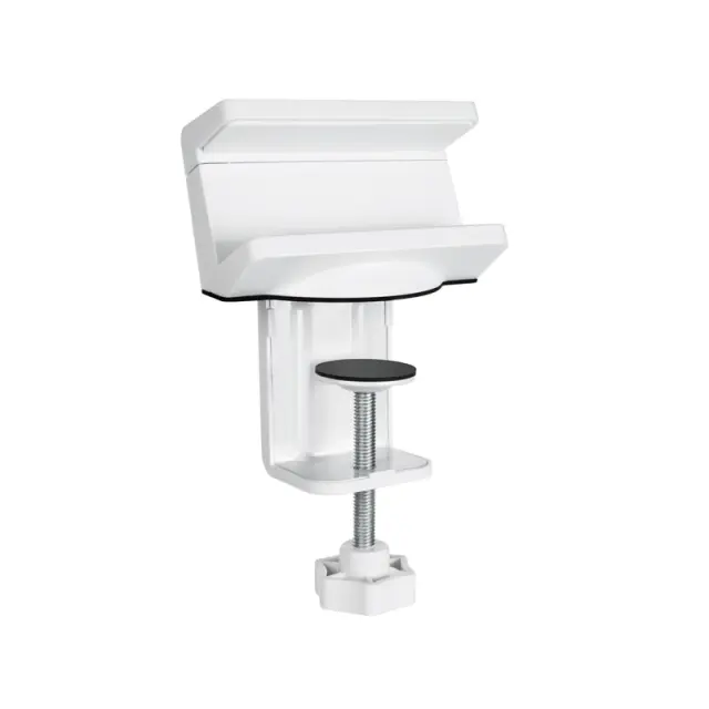 Nosilec Maclean MC-808 lahko pritrdite na vrh mize, mizne plošče itd. z debelino roba od 10 do 55 mm. Izdelek je združljiv z večino razdelilcev širine od 40 do 60 mm. Ušesa na zadnji strani nosilca olajšajo organizacijo kablov povezanih naprav.