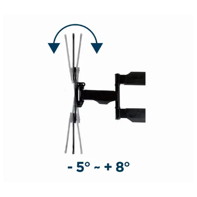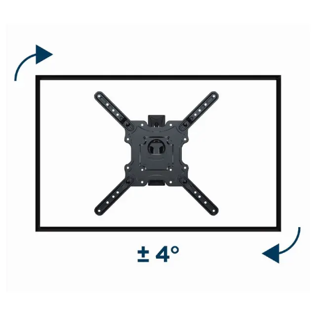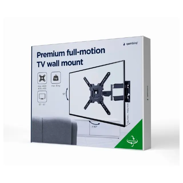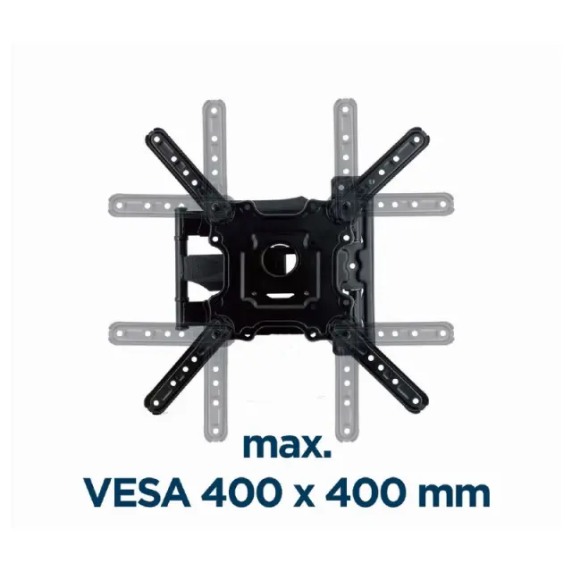 Jeklen vrtljiv/nagiben nosilec. Podpira večino 32"- 55" LCD/LED televizorjev. Združljivo z VESA, maks. 400x400 mm. Stenska razdalja: 55-499 mm. Omogoča vrtenje do 180 stopinj in 8 stopinj nagibanja. Vključuje vse potrebne inštalacijske materiale.
