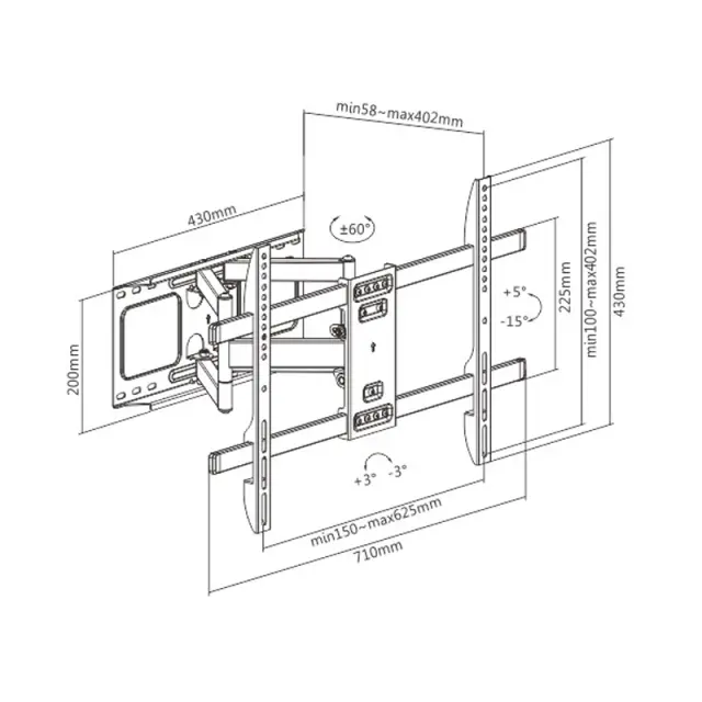 Jekleni stenski TV nosilec z možnostjo izvleka in obračanja za zaslone velikosti 37"- 80".