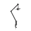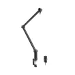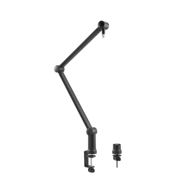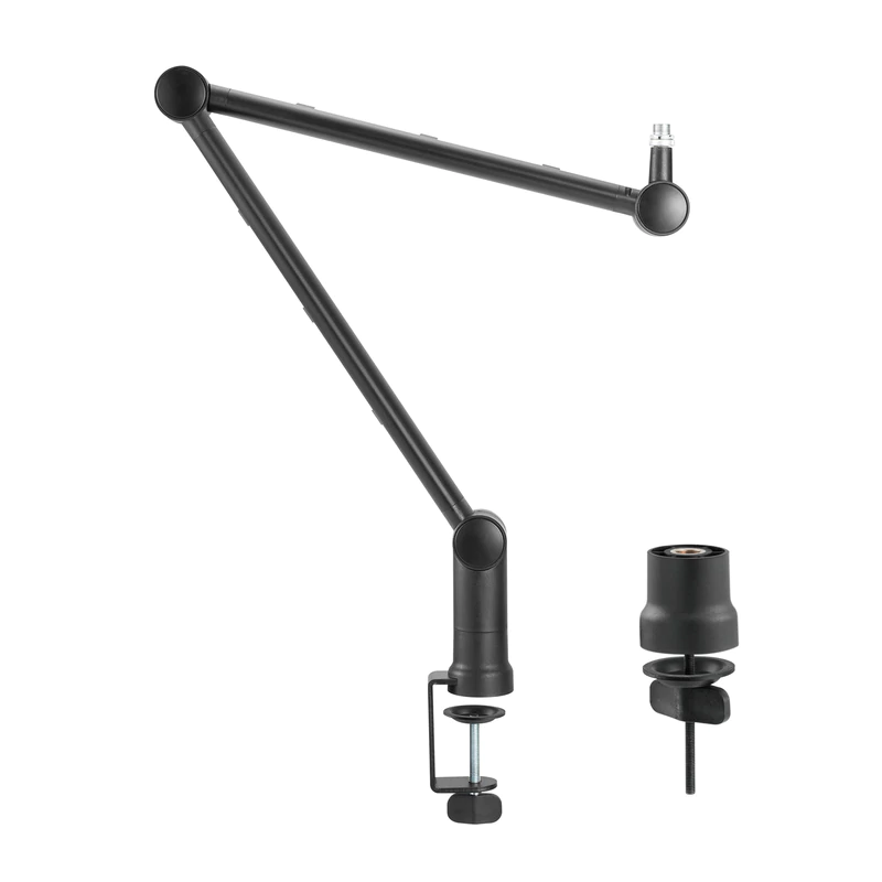 Profesionalni nosilec za mikrofon z visoko stabilnostjo in trdno konstrukcijo. Lahko se vrti za 360° in enostavno namesti zahvaljujoč dvema rokama. Podpira mikrofone do 1 kg. Zelo enostavna namestitev brez vrtanja. Z integriranim sistemom za upravljanje kablov. Idealno za radio, studijsko in domačo uporabo.
