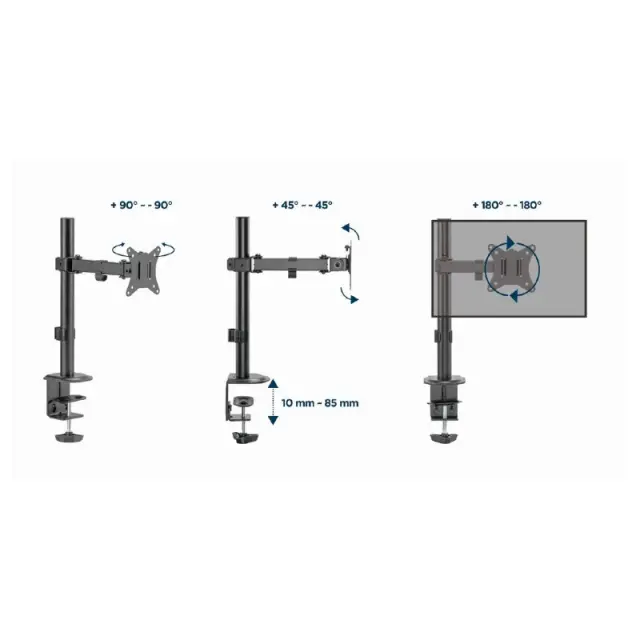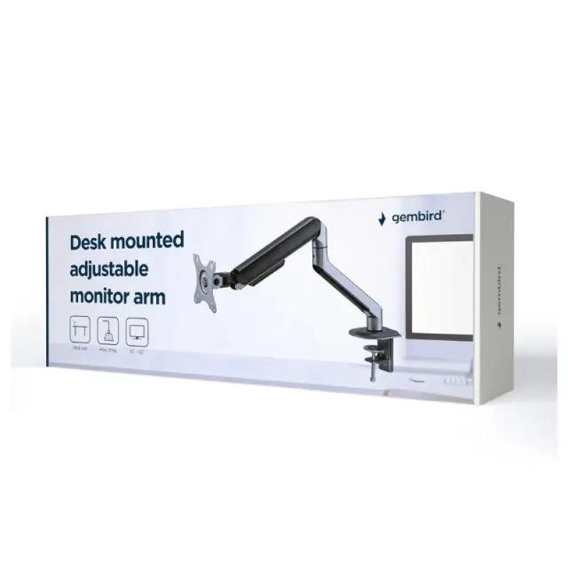 Jekleni mizni nosilec za LCD monitor Gembird MA-DA1-05, primeren za zaslone od 17″ do 32″.