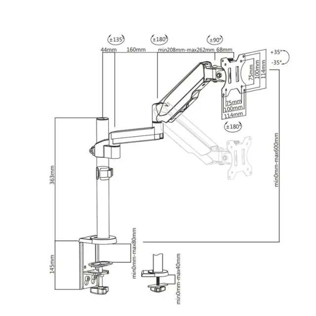Nagib nosilca monitorja: +35 / -35 °