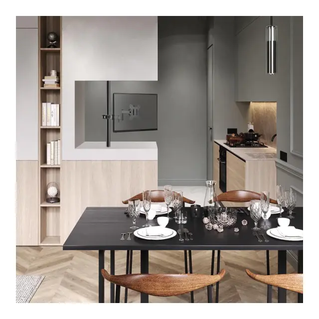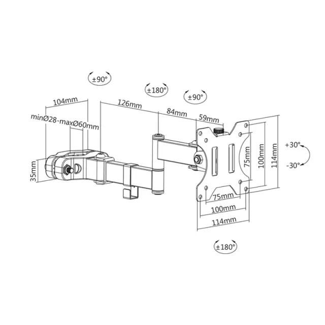 Univerzalni nosilec za pritrditev na drog za LED, LCD monitorje z diagonalo od 17 do 32" in največjo težo do 8 kg. Nosilec omogoča nastavitev kota nagiba in obračanje monitorja.