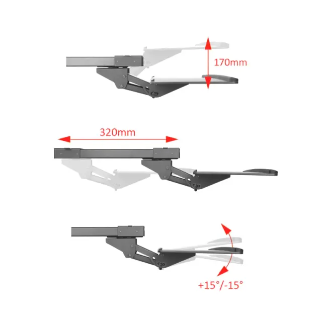Nosilec Maclean MC-757 omogoča večji delovni prostor na mizi. Velika površina ponuja 67 cm prostora - popolno za tipkovnico in miško. Držalo lahko preprosto namestite pod svojo mizo. Površino lahko nagnemo do 15 stopinj navzdol ali navzgor.