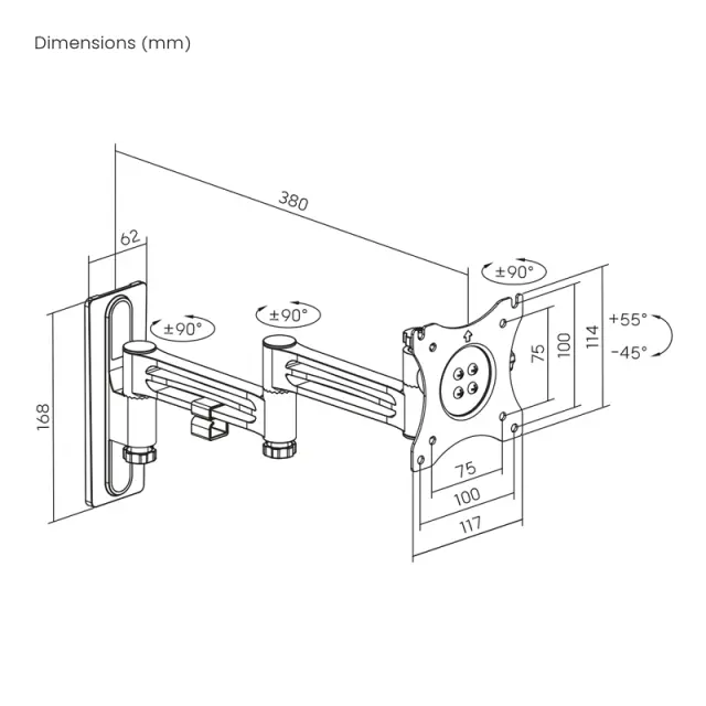Naklon od +55 ° do - 45°