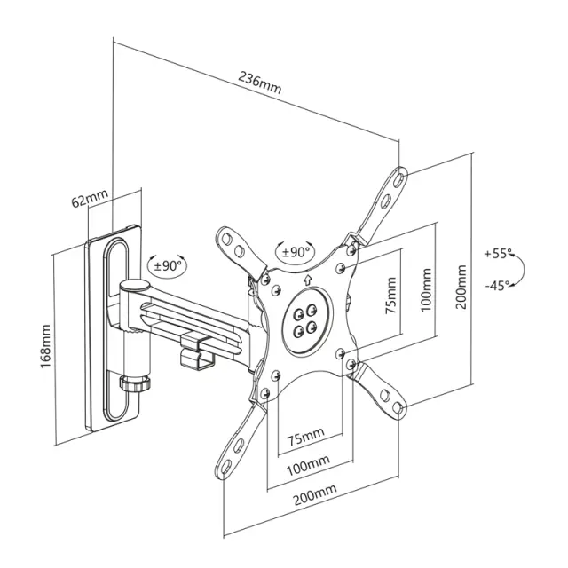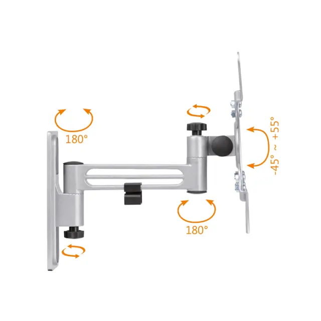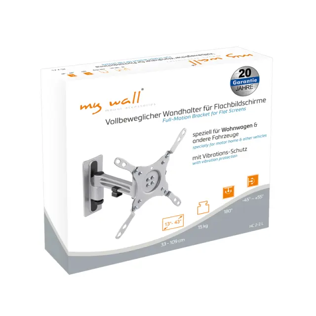 Vrtljiv stenski TV nosilec MyWall HC 2-2L z 2 individualno nastavljivimi spoji je primeren za vgradnjo v avtodome in prikolice.