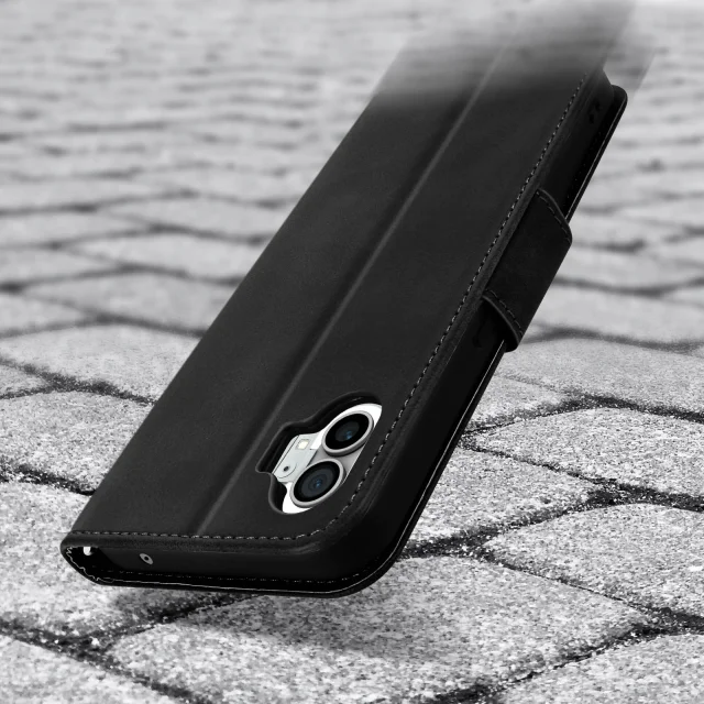 Nothing Phone 1 etui, preklop za denarnico in stojalo za video, s pašckom za zapestje - crn