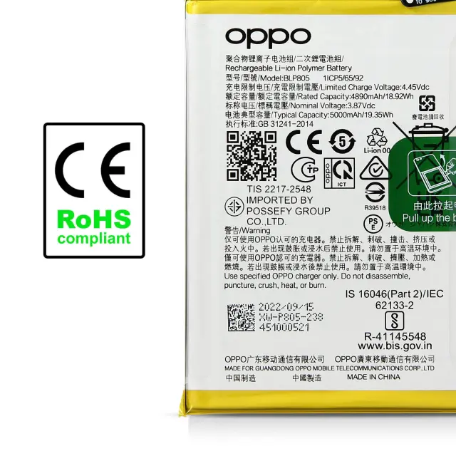 Originalna baterija za OnePlus Nord CE 3 Lite 5G. Kapaciteta 5000mAh, popolnoma enaka originalu. Obnovite začetno življenjsko dobo baterije pametnega telefona in uživajte v vseh njegovih funkcijah. Zagotavlja varno polnjenje: proti prekomernemu polnjenju, proti pregrevanju.