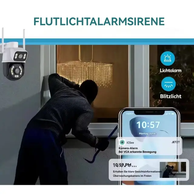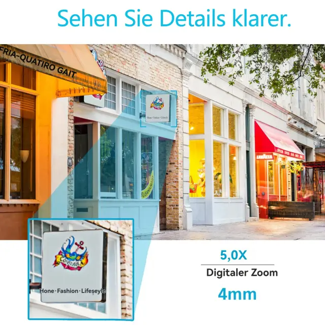 • Nočna vizija: Ohranite nadzor nad okolico tudi v slabi svetlobi, kar zagotavlja mirnost med nočjo.