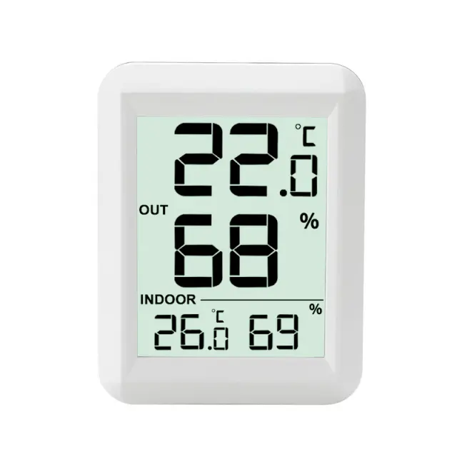 Večnamenski termometer: brezžični termometer in higrometer, ki meri notranjo in zunanjo temperaturo ter meri tudi vlažnost. Priložen je senzor.