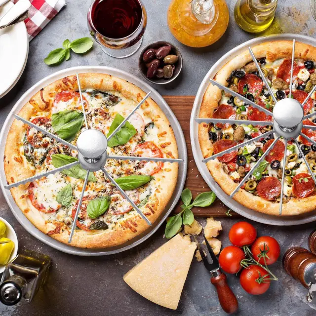Preprosto rezanje: Ta rezalnik za pico ima oster, večzobni dizajn, ki z lahkoto drsi skozi skorjo pice in zagotavlja čiste in enakomerne rezine vsakič. Poslovite se od neenakomernih rezov in razmetanih dodatkov.
