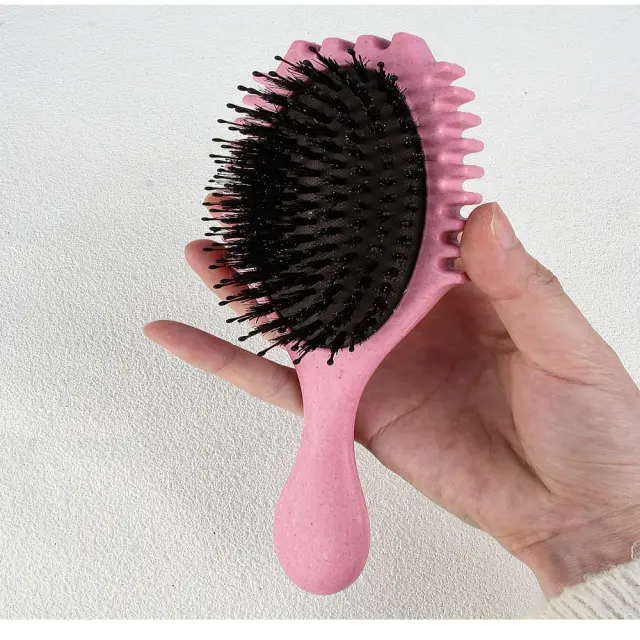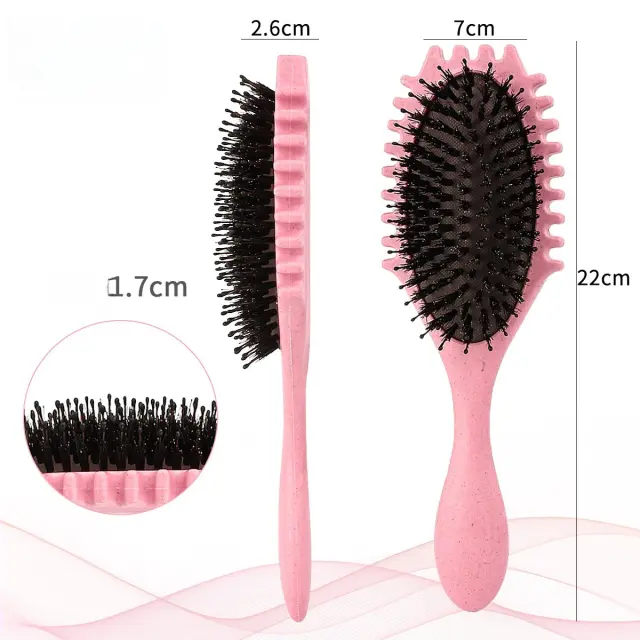 Nežno razčesavanje: Ta krtača z zračno blazino je zasnovana s prožnimi ščetinami, ki zlahka drsijo skozi vozle in zapletke, ne da bi jih pulili ali trgali, kar zmanjša lomljenje in razcepljene konice za bolj zdrave lase.