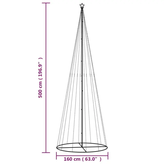 Novoletna jelka stožec 732 modrih LED lučk 160x500 cm
