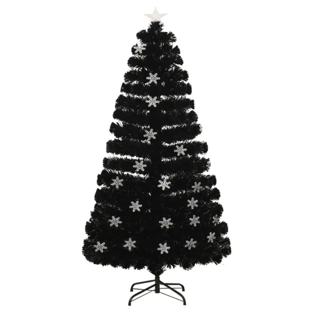 Novoletna jelka z LED snežinkami črna 120 cm optična vlakna