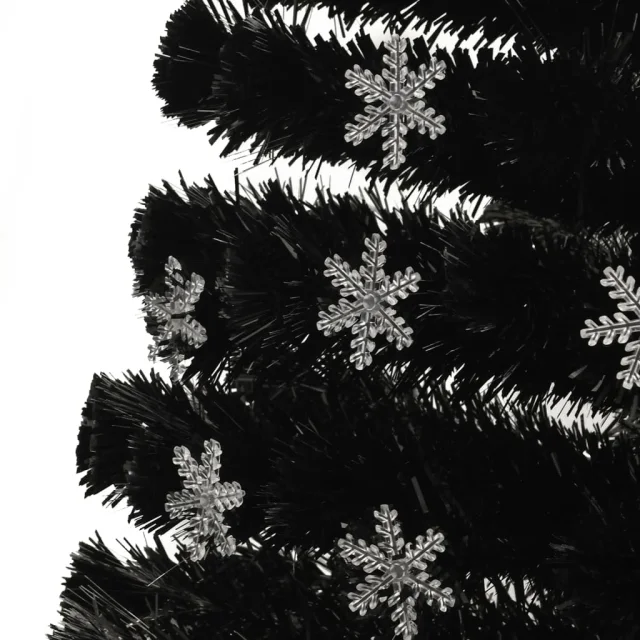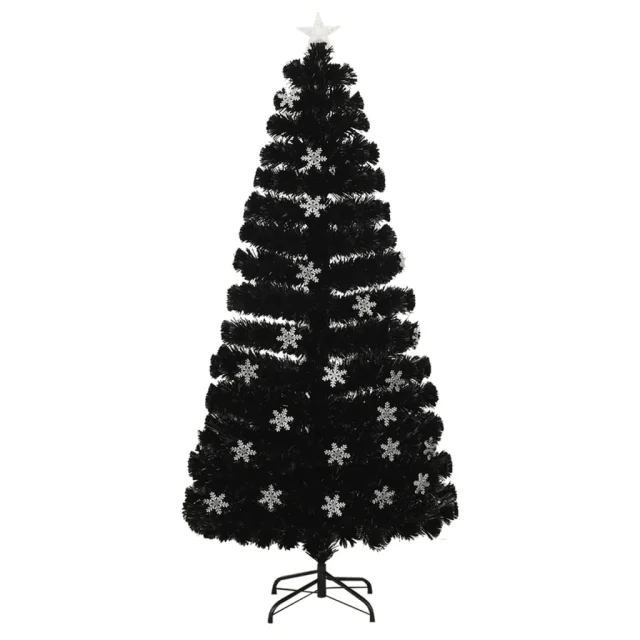 Novoletna jelka z LED snežinkami črna 150 cm optična vlakna