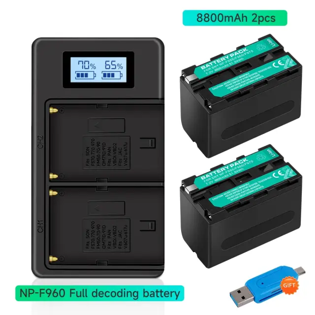 NP-F960 NP-F970 komplet baterij, kapaciteta 8800mAh, dvojni polnilec, 2 bateriji 1 polnilec